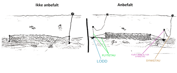 Vær oppmerksom på at statsforvalteren i ditt fylke kan ha bestemt at ALLE garn uansett maskevidde må senkes i perioden 1. mars til 30. september