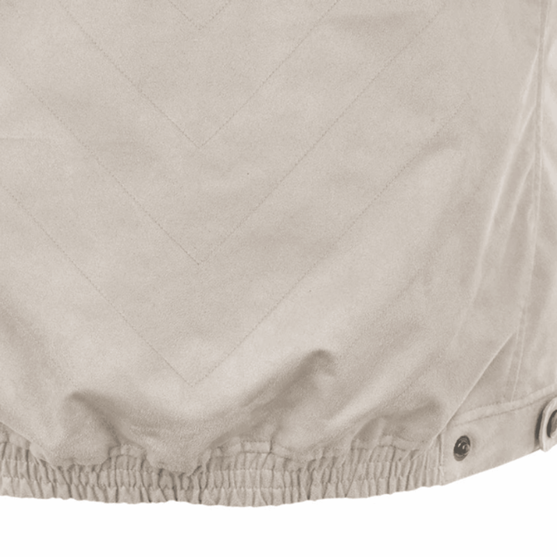 Vesten er laget i imitert semsket skinn med en myk finish.