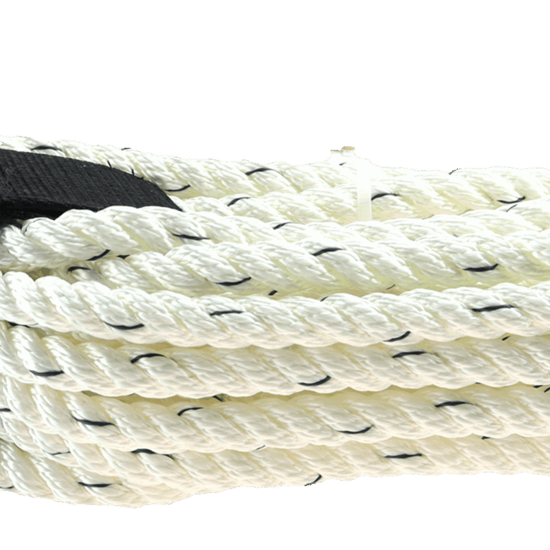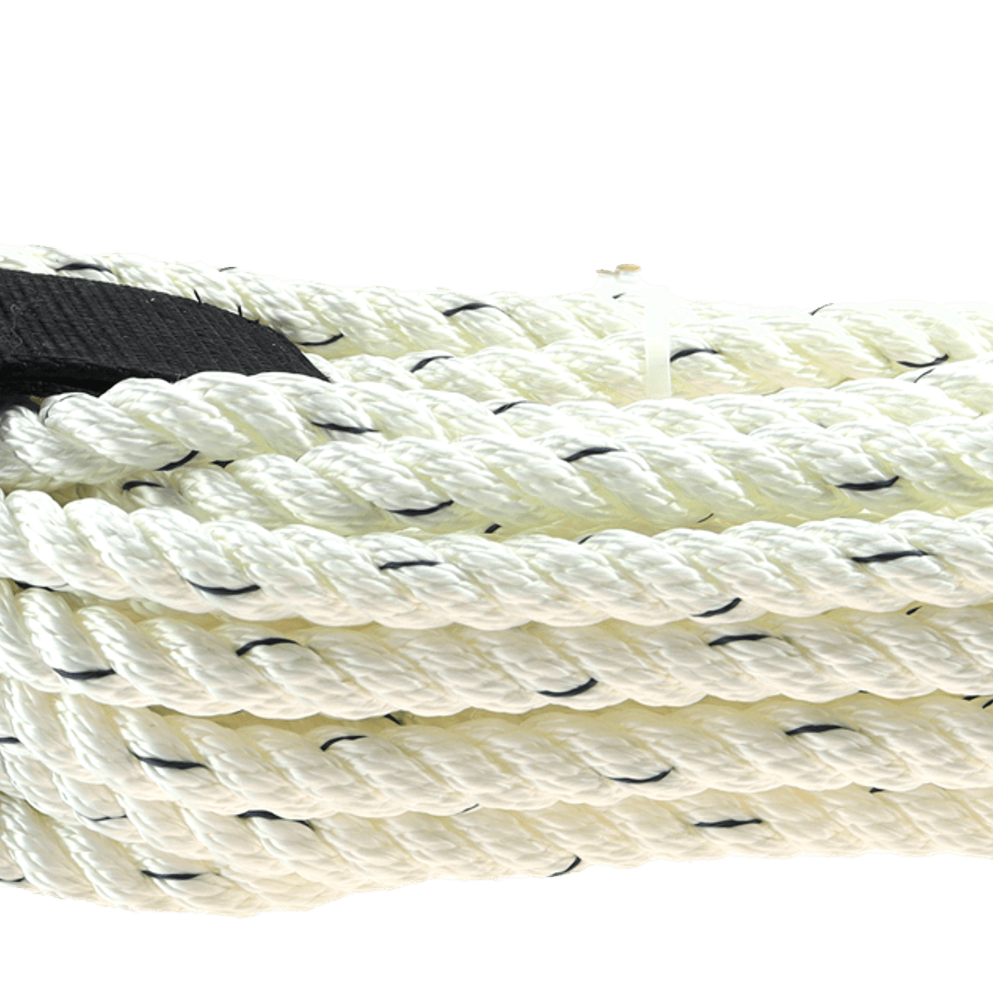 Hvit, UV-bestandig fortøyningstau med blå tråd og øye, 3-slått Polyester.