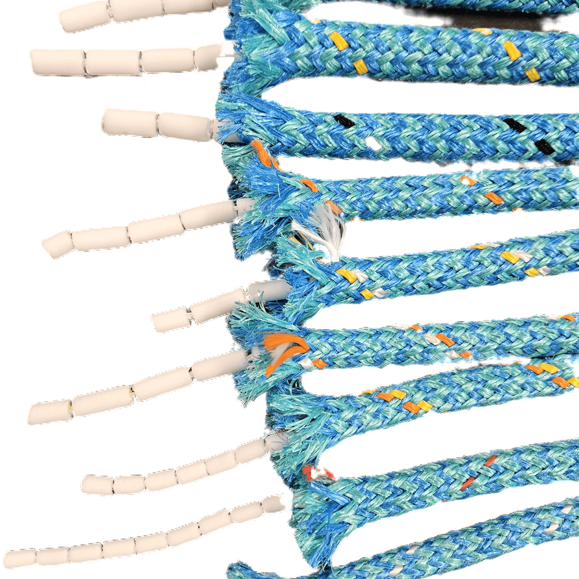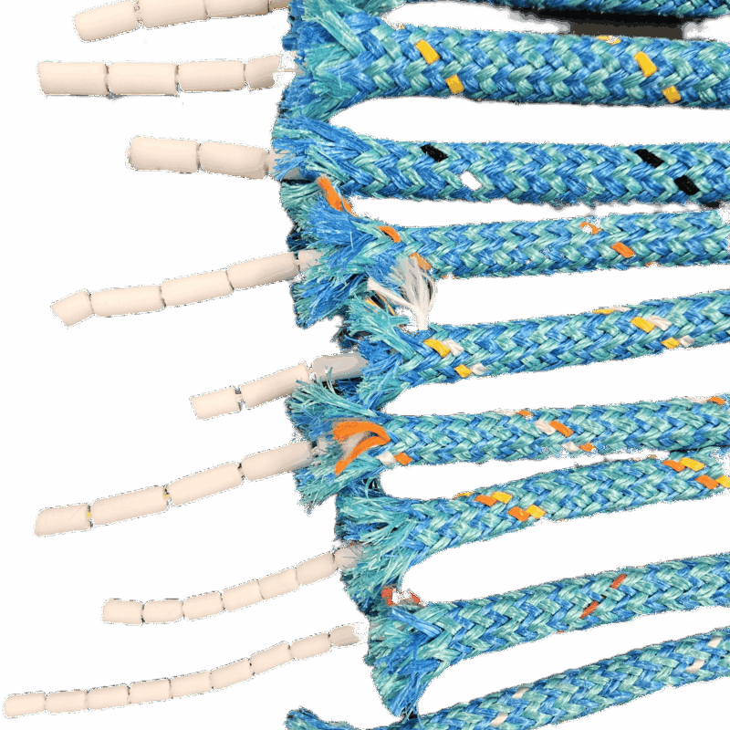 • består av en  kjerne av leddelt flytemateriale omflettet med en strømpe av P.P. filiamenter