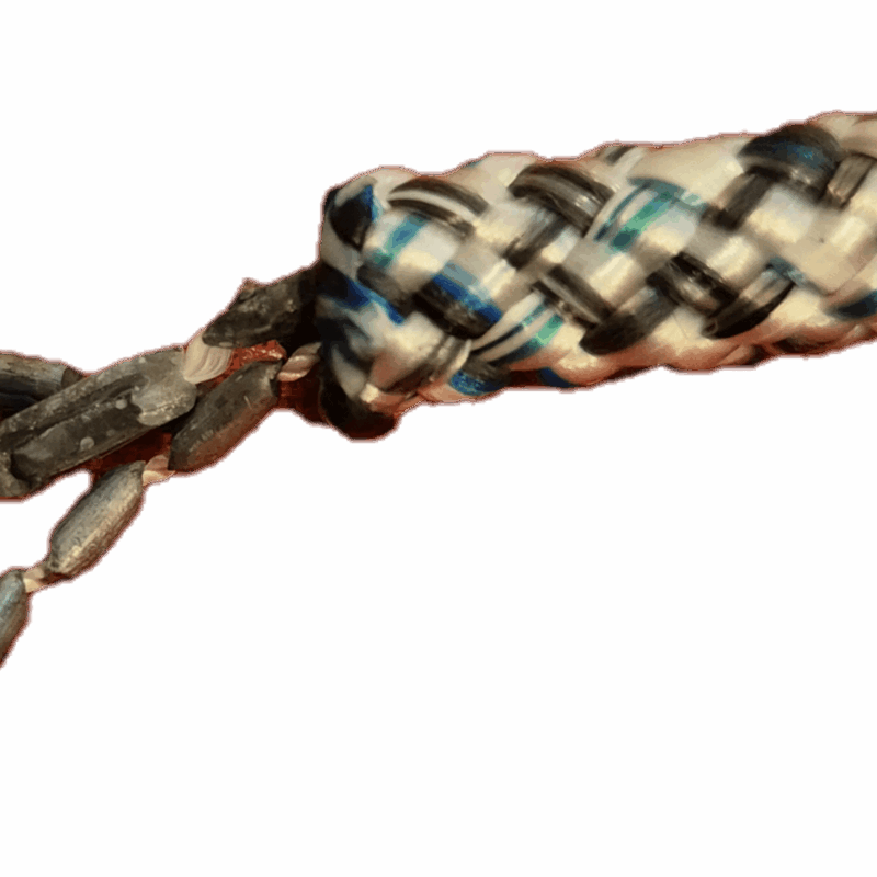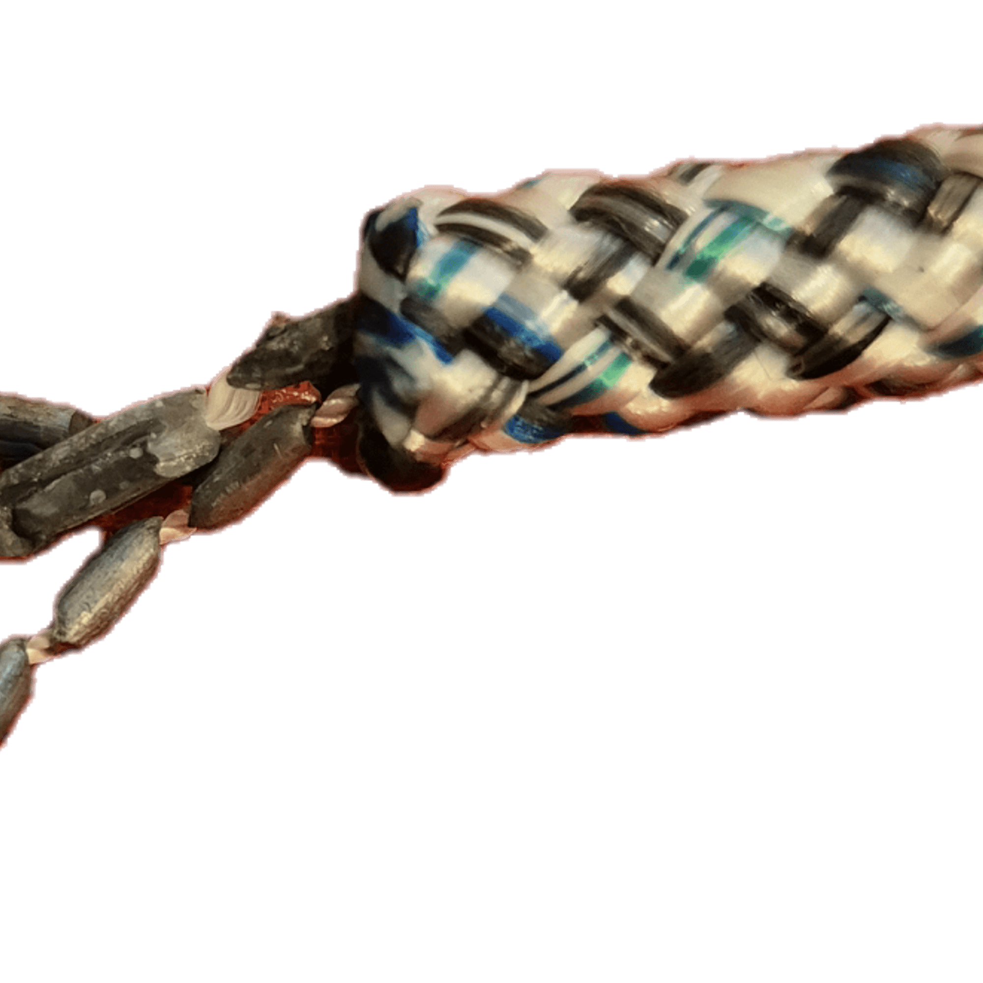 Den består av flere blytråder i kjernen, omflettet med polyester.