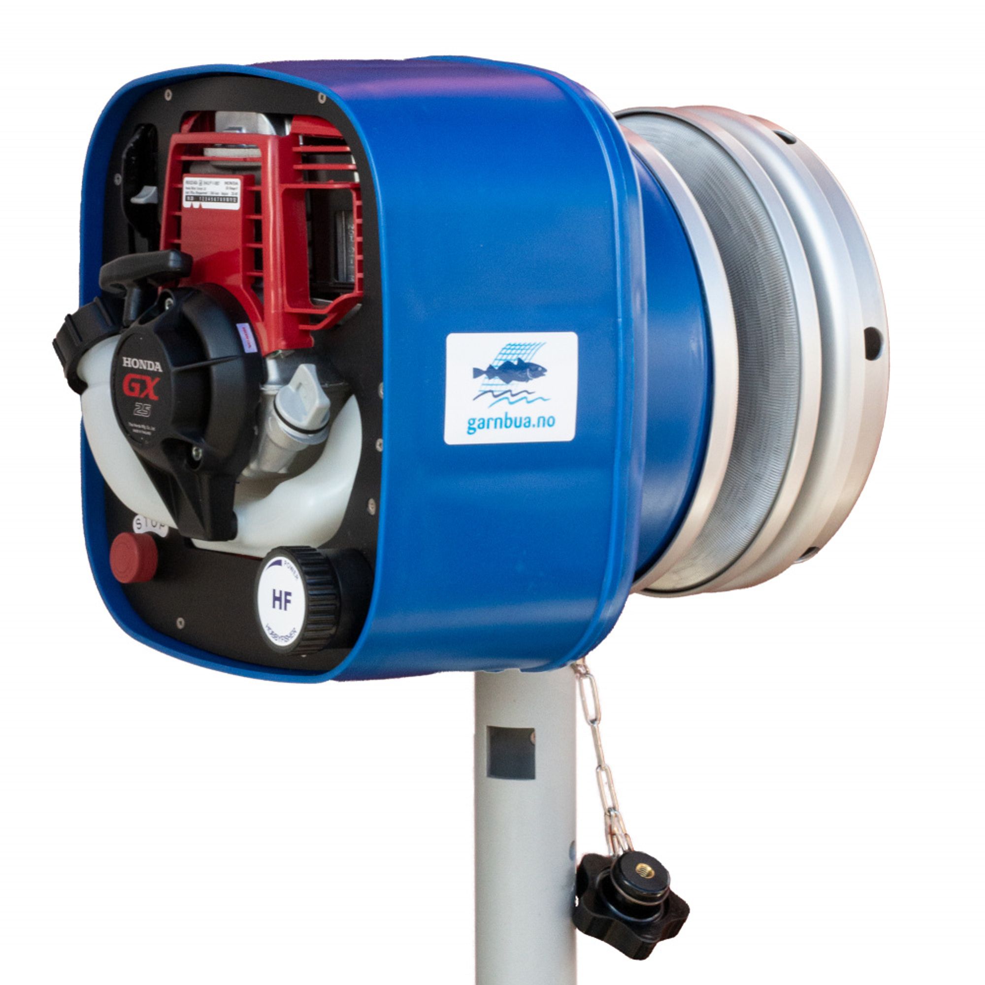 Teinehaler/ garnhaler med Honda GX 25 bensinmotor. Haleren har to sett skiver med ulik diameter.