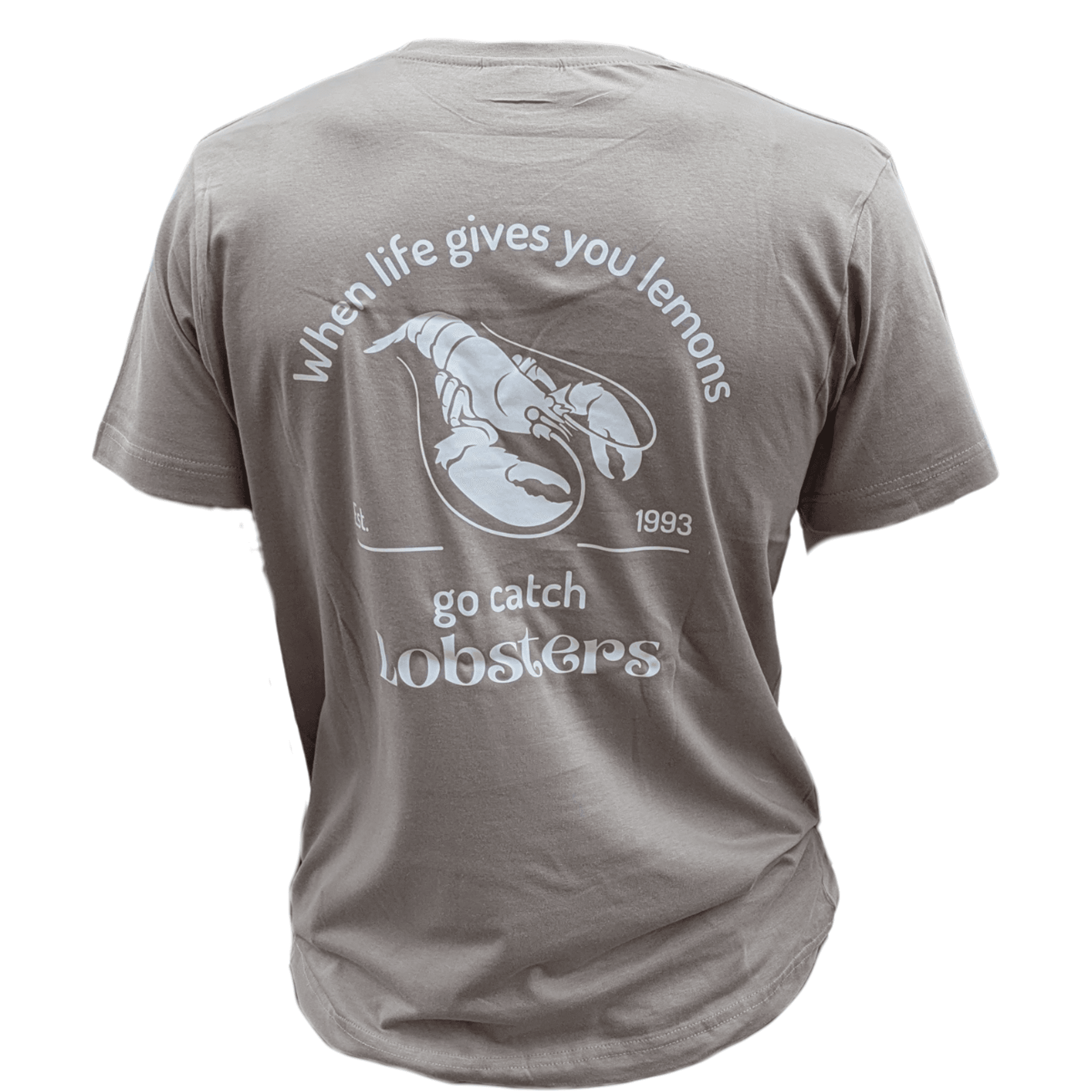 Klassisk t-skjorte i en smalere passform. 100% myk bomull, med liten Garnbua-logo på brystet og sitatet “If life gives you lemons – go catch lobsters” på ryggen.