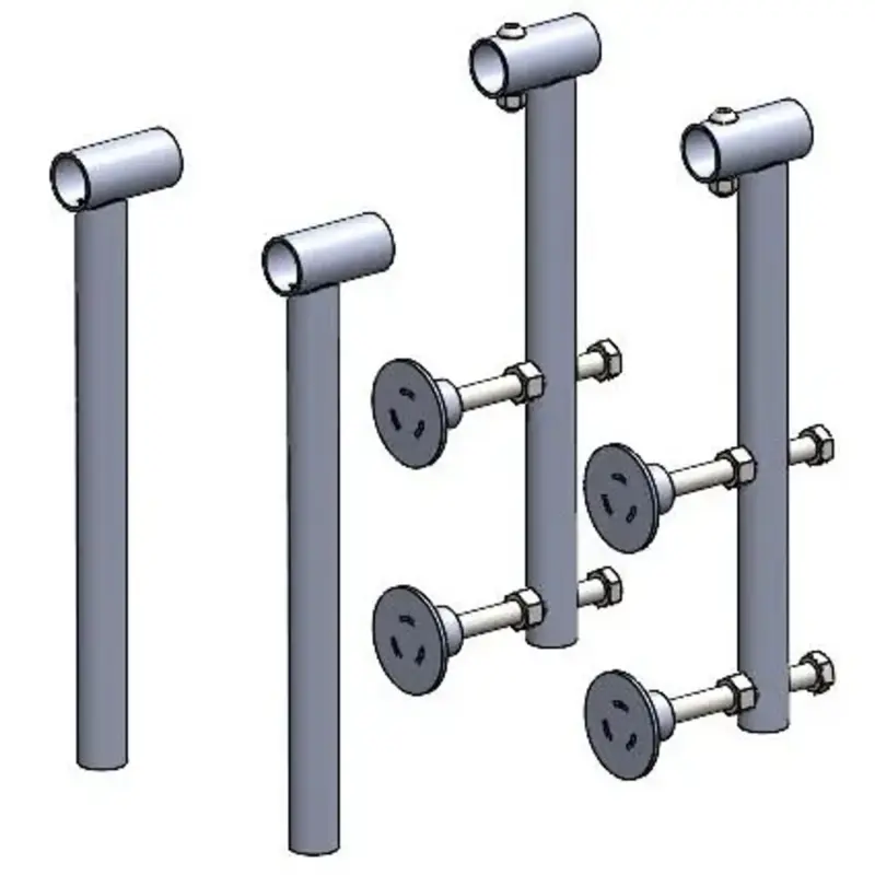 Fire armer går over rekka og festes med fire tvingeskruer.