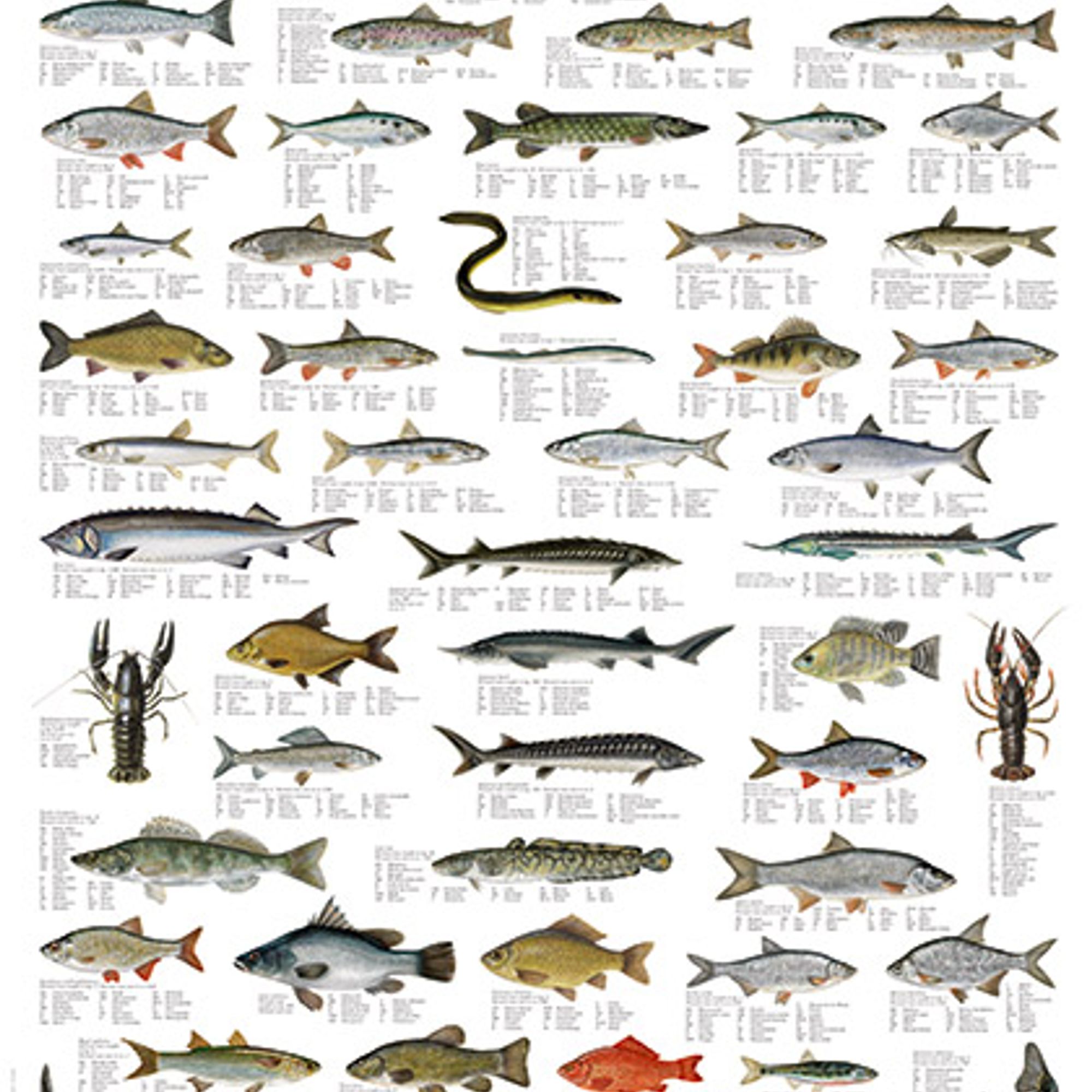 52 av de vanligste ferskvannsfisk i elver og innsjøer i Europa.