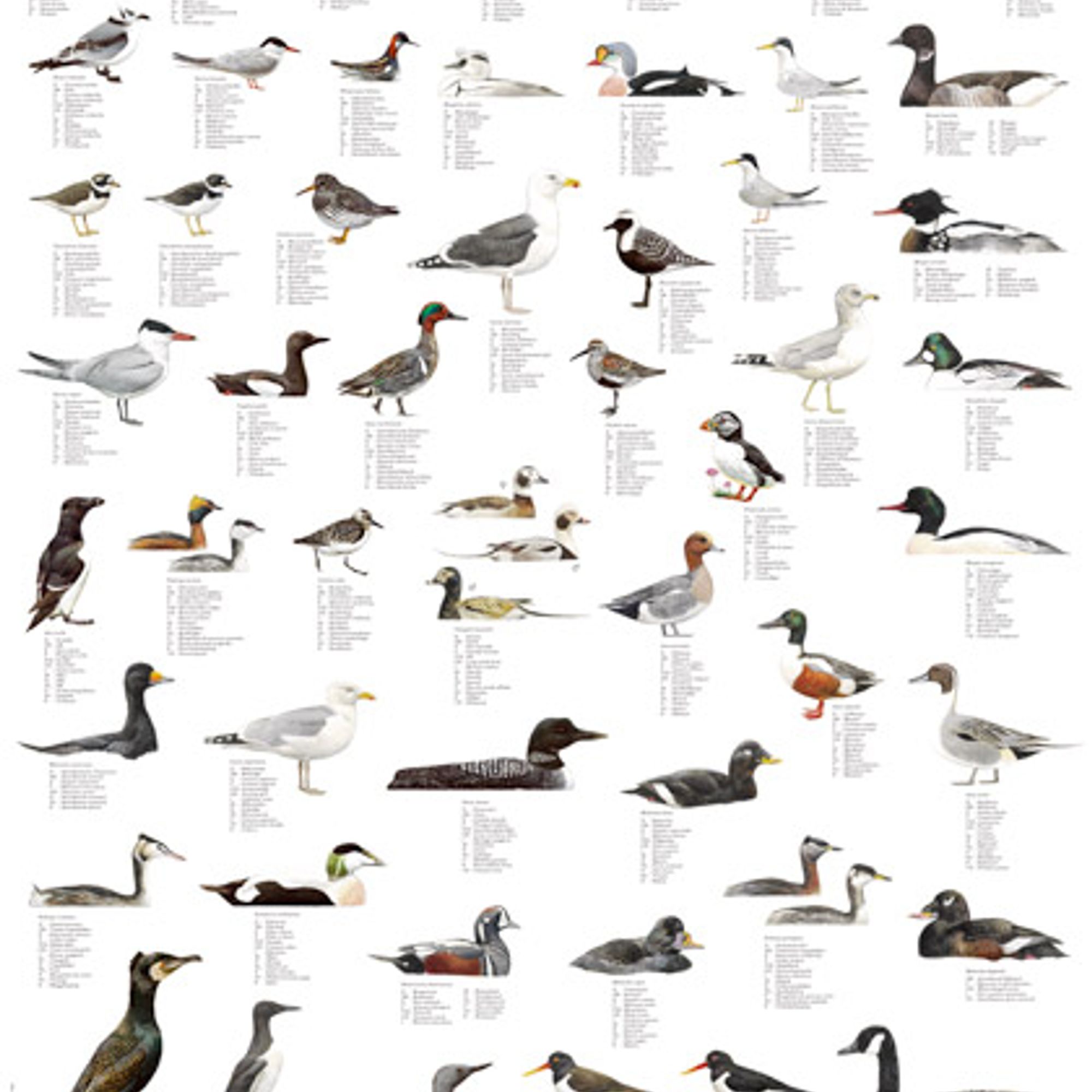 48 av de vanligste kystfugler fra Europa og Nordamerika.
