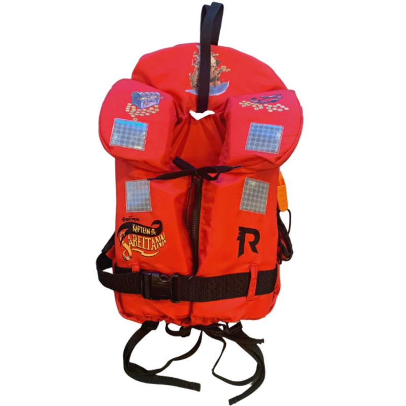Soft redningsvest i flott rød farge og print med alle barns kjære og «fryktede» sjørøver «Kaptein Sabeltann».