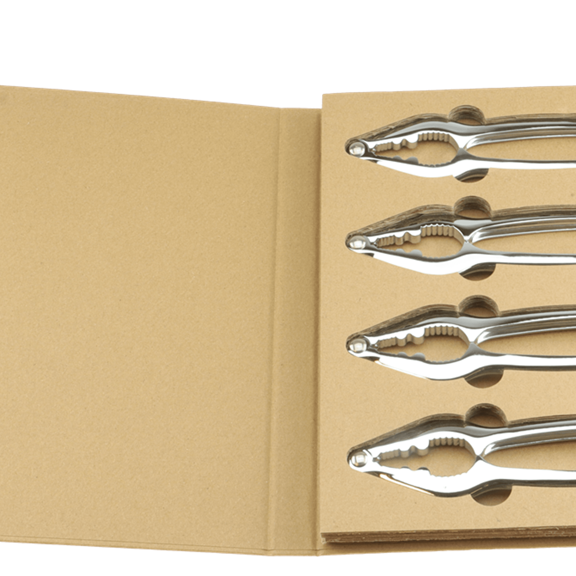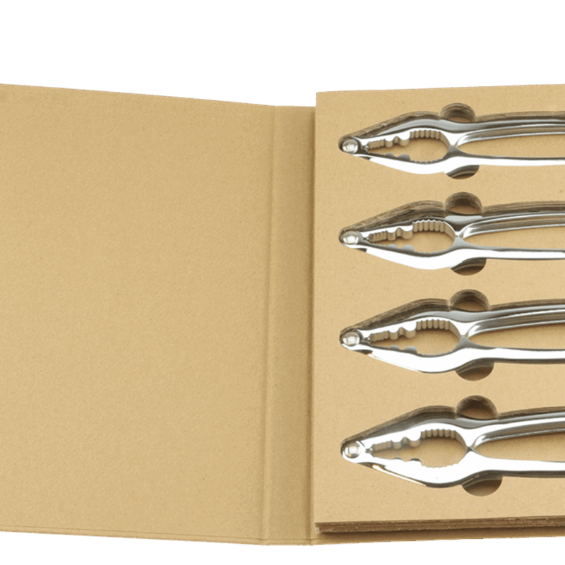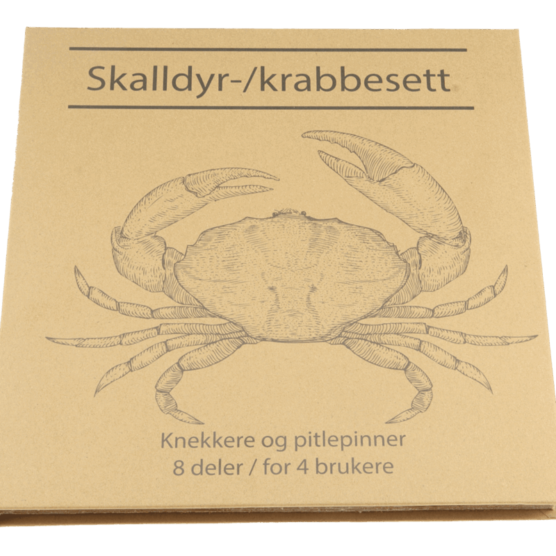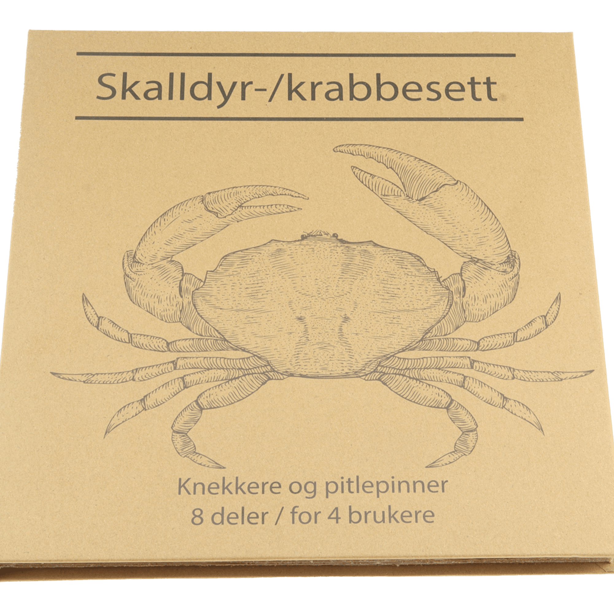 Flott gavesett med 4 stk skalldyrgafler og 4stk knekkere.