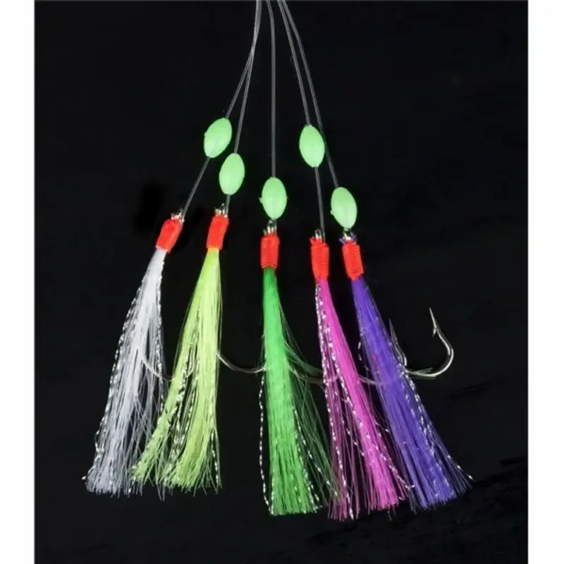 Søvik Makrellhekle 001 er et pålitelig og fargerikt takkel designet for effektivt fiske etter makrell, sei og annen stimfisk. De fluoriserende perlene og lokkeduskene gir høy synlighet i vannet, mens de sylskarpe krokene sikrer god kroking.