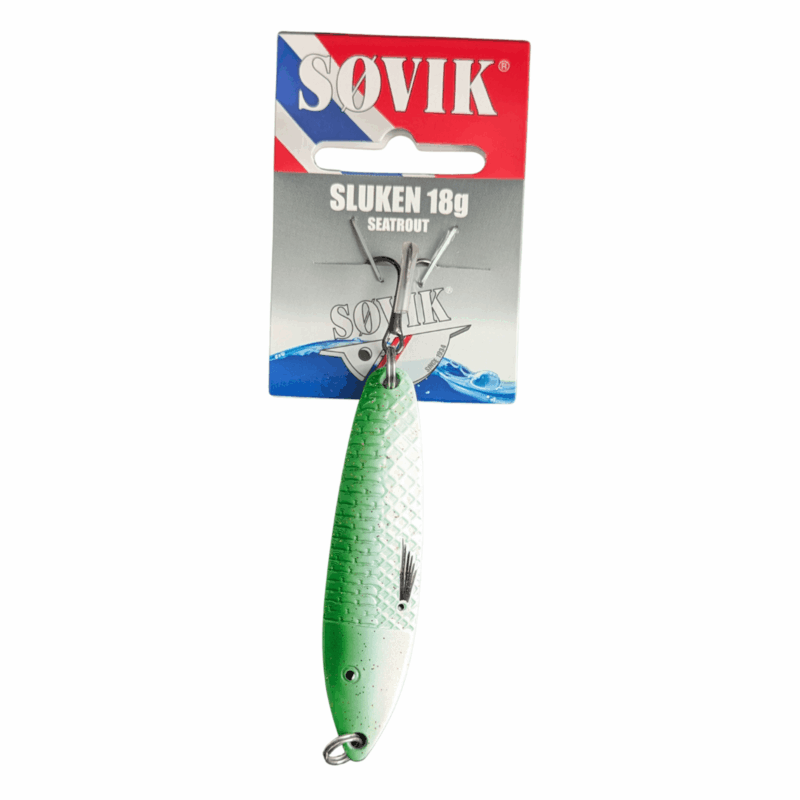 Søvik Sluken er en av de aller tidligste sildeslukene som ble tatt i bruk i Norge. Den populære fasongen er blitt vanlig på mange slukmodeller i de senere år og det er ikke tilfeldig. Denne utpregede fasongen kombinerer nemlig prima kasteegenskaper og lokkende gange på en førsteklasses måte. De gode allround egenskapene er også et sikkert kjennetegn på disse lukene. Søvik Sluken lokker nemlig fisk til hogg under alle forhold! Det er egentlig bare å velge den vekt og farge som passer deg, enten du skal på fjellet, i elva eller langs vår lange kyst. Dette er velfungerende og klassiske sluker i lekker design!