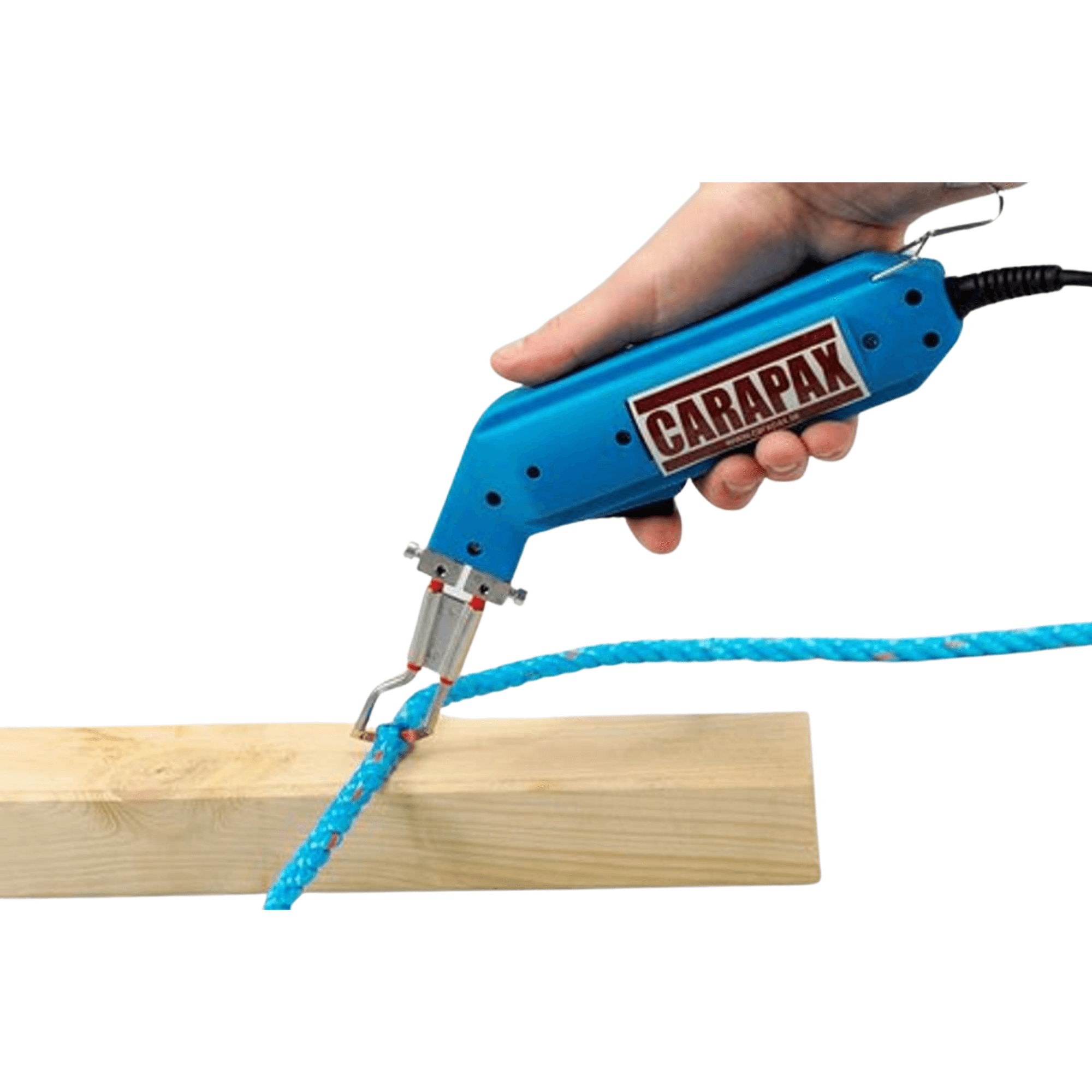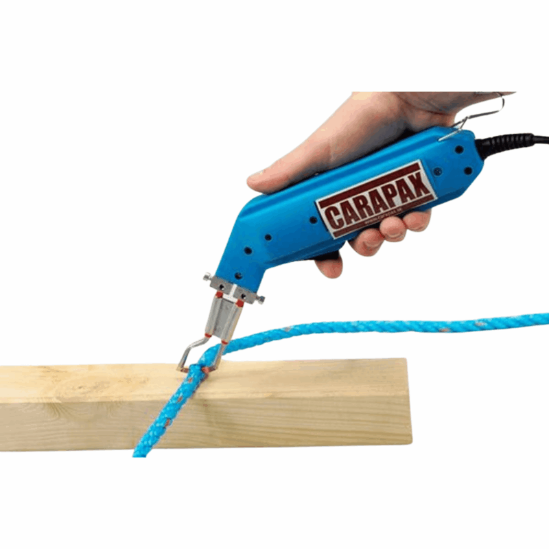 Skjærer og brenner fiberene samtidig, dette forhindrer at tauet frynser seg opp.