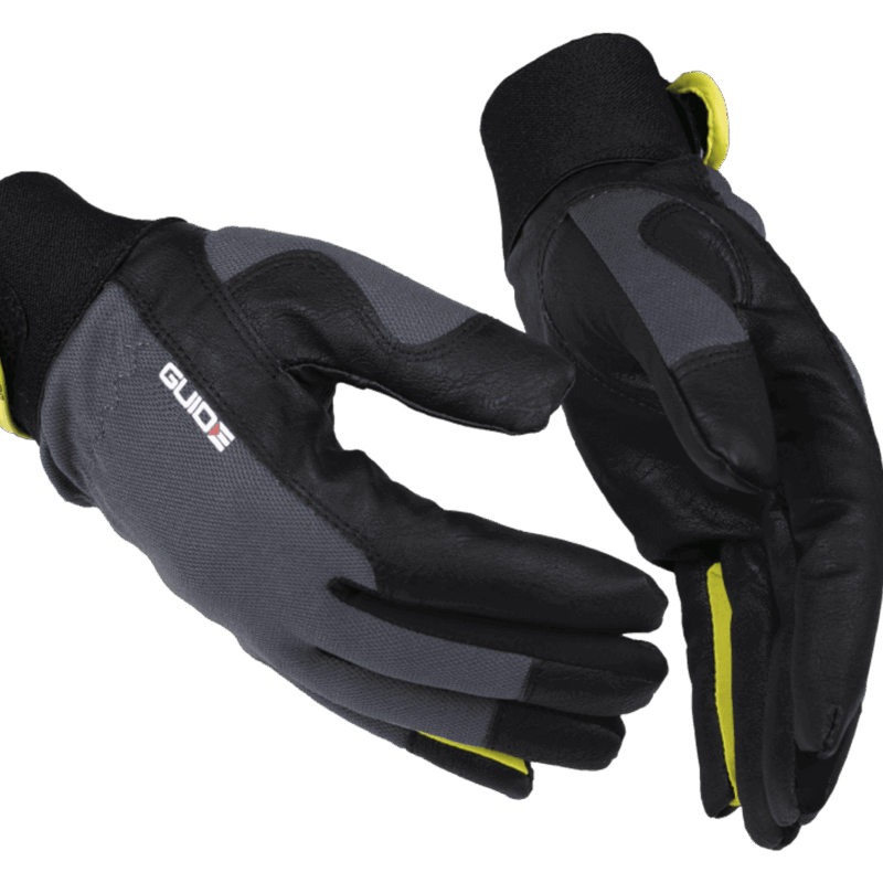 Elastiske mansjetter med borrelås gjør at hansken sitter godt, og er lett å ta av og på. Egnet for montering og finmekanikk i våte og kalde miljøer.